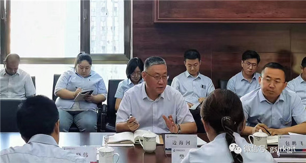 在甘肅再擔保,邊海河聽取了甘肅再擔保黨委關于落實集團黨委“四抓四強化”部署安排、黨建融入生產經營典型創建、企業文化建設、全面從嚴治黨和黨風廉政建設責任制情況的匯報。邊海河對甘肅再擔保黨建工作開展給予了充分肯定,并對存在的問題提出了指導性意見。他強調,要按照集團黨委安排部署,堅持以黨建為統領,在黨建中找原因、尋差距,并在改革中找辦法,不斷提高黨建工作水平,帶動業務工作再上新臺階。