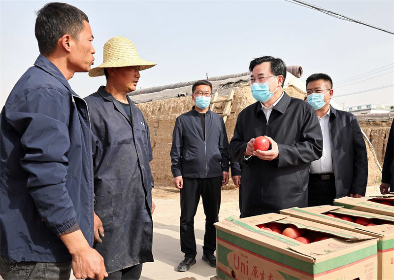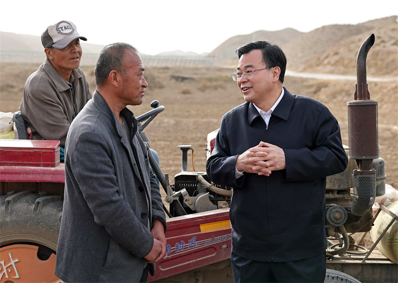 在白銀區(qū)武川鄉(xiāng)紅峴村、靖遠縣東灣現(xiàn)代農(nóng)業(yè)產(chǎn)業(yè)園,胡昌升走進田間地頭、蔬菜大棚,與正在勞作的群眾親切交流,詳細詢問春耕生產(chǎn)、鄉(xiāng)村振興等情況。他強調(diào),要做好農(nóng)資農(nóng)機服務保障,加強農(nóng)業(yè)技術(shù)指導,全力抓好春耕生產(chǎn)。要善于挖掘和利用本地優(yōu)勢資源發(fā)展特色富民產(chǎn)業(yè),培育壯大新型農(nóng)業(yè)經(jīng)營主體,提升組織化集約化水平,促進農(nóng)業(yè)增產(chǎn)增效、農(nóng)民增收致富。要落實五級書記抓鄉(xiāng)村振興要求,發(fā)揮好基層黨組織和黨員干部作用,更好組織群眾、宣傳群眾、凝聚群眾、服務群眾,緊緊圍繞促進農(nóng)民增收這個中心任務,把黨組織建在產(chǎn)業(yè)鏈上,把黨員聚在產(chǎn)業(yè)鏈上,讓群眾富在產(chǎn)業(yè)鏈上,把黨的組織優(yōu)勢轉(zhuǎn)化為加快鄉(xiāng)村發(fā)展的實際成效。