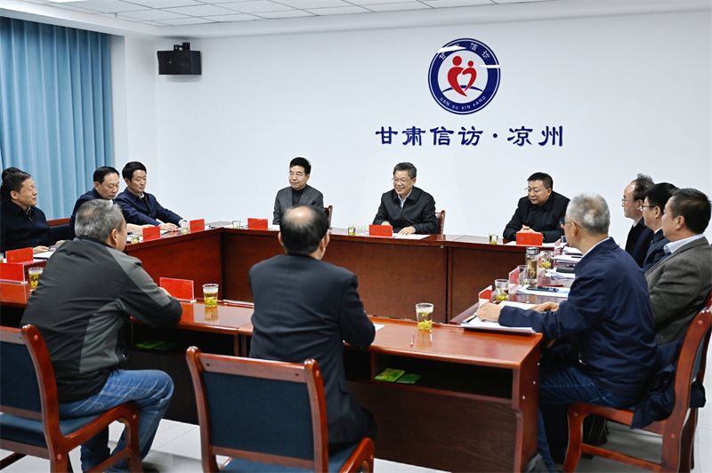 省委副書記、省長(zhǎng)任振鶴日前在武威市涼州區(qū)接待來(lái)訪群眾。(新甘肅·甘肅日?qǐng)?bào)記者盛學(xué)卿)