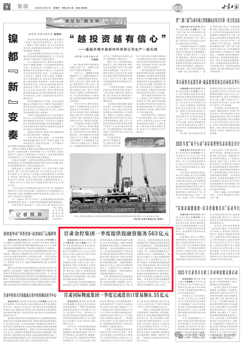 今年以來,甘肅金控集團緊緊圍繞做好金融“五篇大文章”,深入推進落實“財政+金融”模式,以深化國企改革為牽引,不斷增強核心功能、提升核心競爭力,加強協同創新,加大對全省重大戰略、重要領域和薄弱環節的金融服務力度,持續提升服務實體經濟質效。