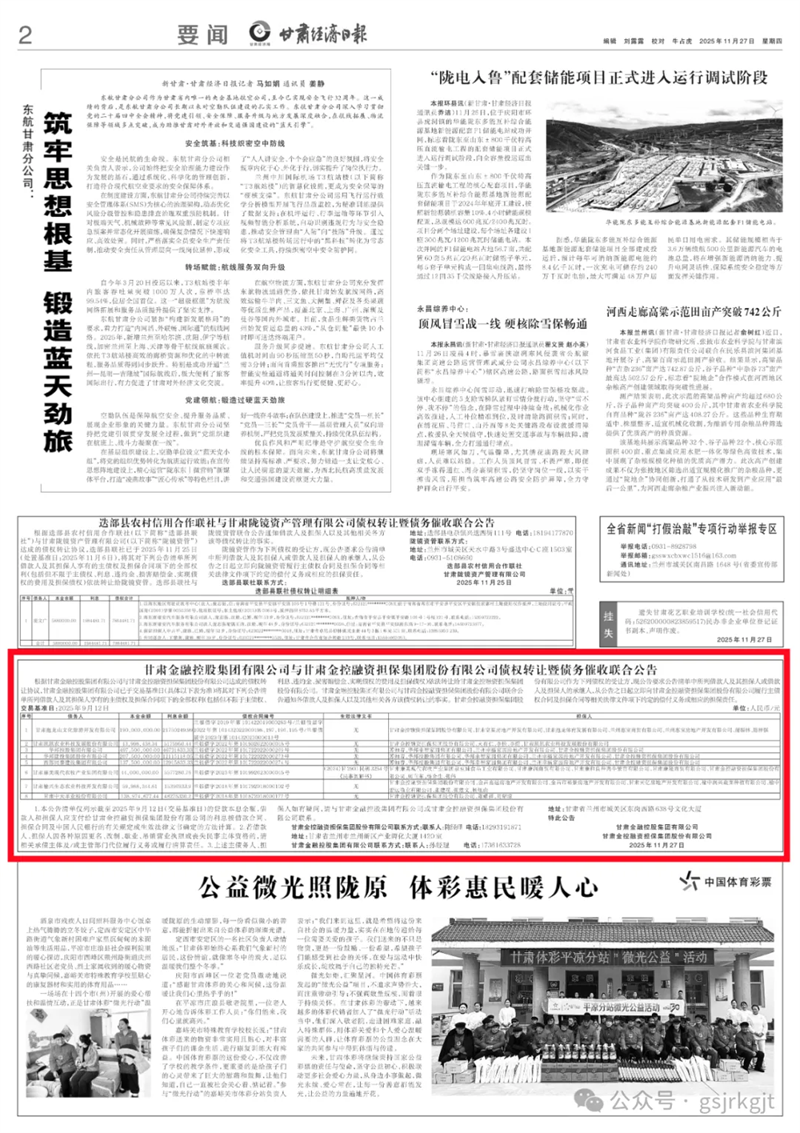 甘肅金融控股集團有限公司與甘肅金控融資擔保集團股份有限公司債權(quán)轉(zhuǎn)讓暨債務(wù)催收聯(lián)合公告