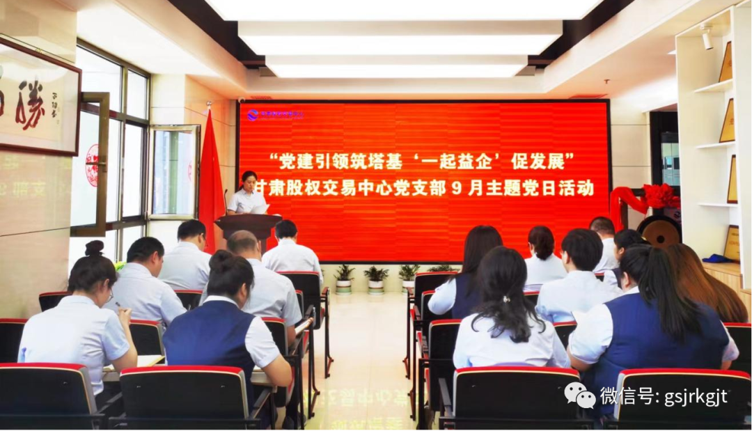近日,甘肅股權交易中心黨支部召開“黨建引領筑塔基‘一起益企’促發展”主題黨日活動。支部書記樊亞娟主持會議,全體黨員及員工參加。