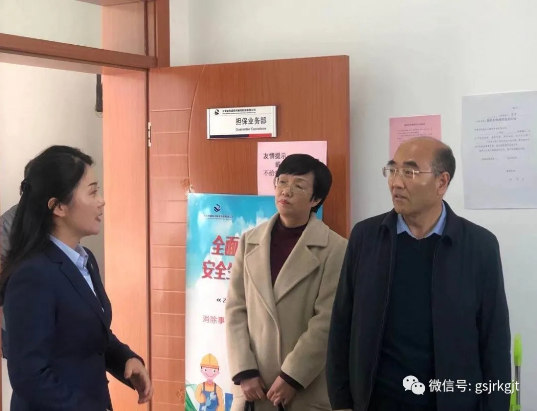 王毅一行親切看望慰問(wèn)了甘肅金控嘉峪關(guān)擔(dān)保公司全體干部職工,現(xiàn)場(chǎng)了解公司擔(dān)保流程、風(fēng)險(xiǎn)控制、獎(jiǎng)補(bǔ)政策等工作情況,就公司發(fā)展過(guò)程中遇到問(wèn)題現(xiàn)場(chǎng)指導(dǎo)交流。