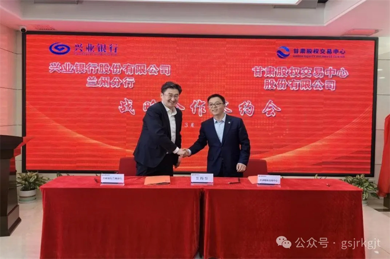 近日,甘肅股權交易中心與興業銀行蘭州分行舉行戰略合作簽約會。興業銀行蘭州分行黨委委員、副行長張華,甘肅股交中心總經理郭曉偉出席會議并致辭,興業銀行蘭州分行投資銀行部副總經理周濤、城關支行行長朱澤、甘肅股交中心掛牌企業甘肅中人通信工程有限公司董事長蹇宗銀出席會議。